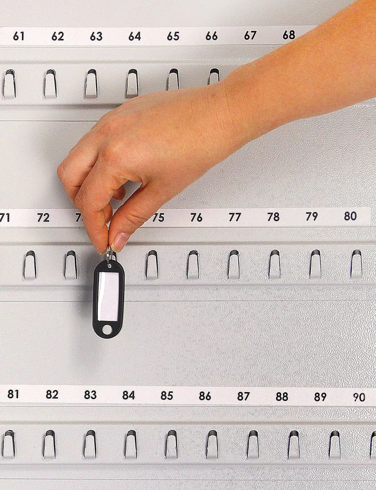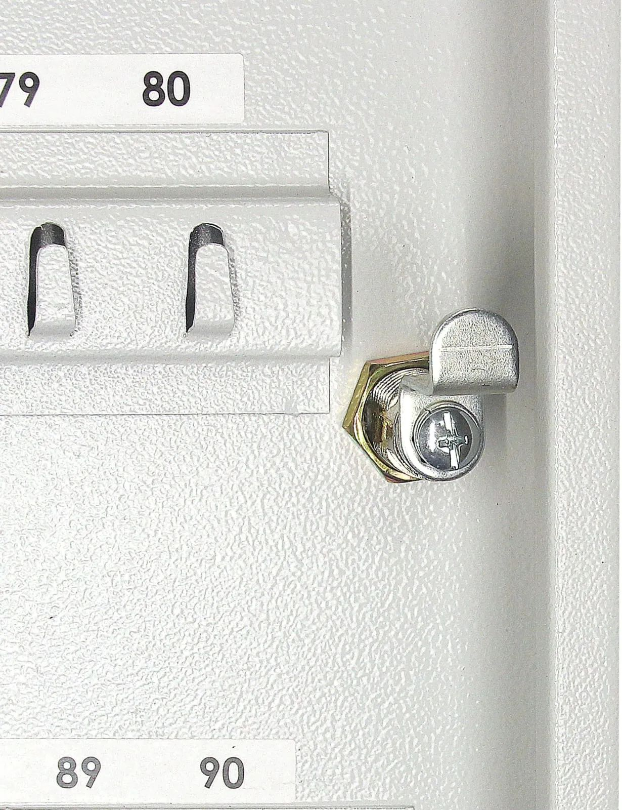 Ключница на 60 ключей представляет собой компактное устройство для удобного хранения большого количества ключей. Ключница комплектуется 6 планками с крючками, что позволяет легко организовать хранение и быстро находить нужный ключ.На задней стенке корпуса расположены отверстия для крепления. В дверь установлен замок типа «Cam-Lock».