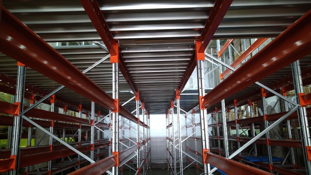 Мезонин для полочного хранения запчастей, настил ДСП.